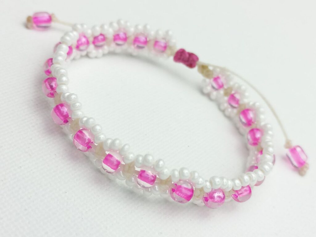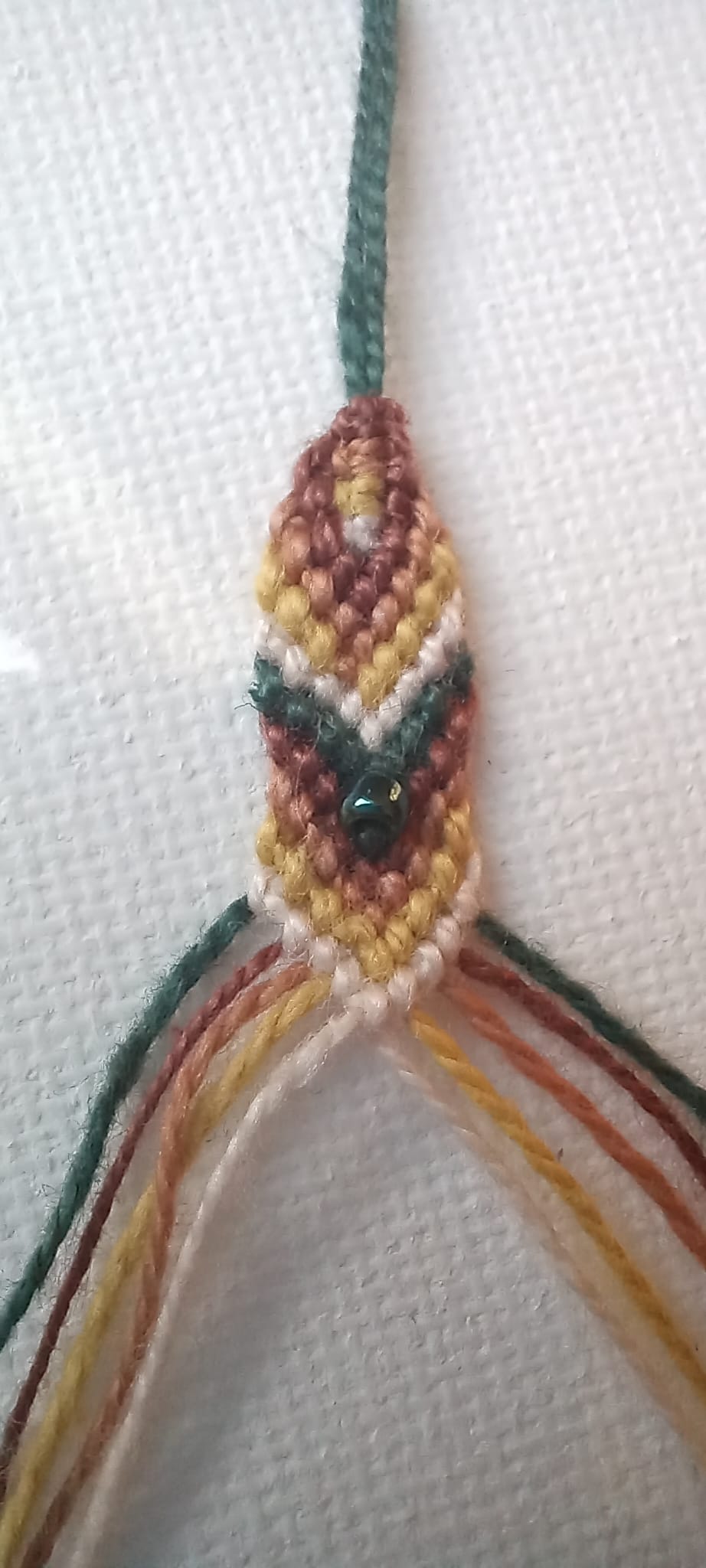 Prace wykonane z kamyków, koralików szklanych, piórka, z drewna, z igieł sosny, sznurki